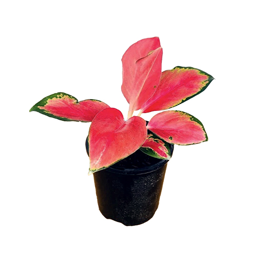 Aglaonema Sunshine has leaves that are predominantly red/pink, adorned with brilliant green variegated edges. The variegation patterns can vary, creating unique and captivating combinations of colours. Sunshine adds a touch of tropical beauty and elegance to any indoor space, making it a popular choice for home decor and indoor gardens. Easy to grow and the best colour is achieved in bright light.