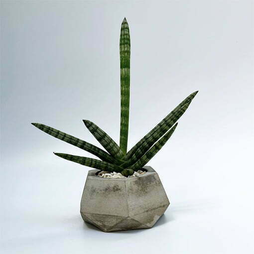 The Snake Plant, Mother In Laws Tongue or Sansevieria is commonly assumed to be just one species the famous Sansevieria Laurentii but the family in fact includes over 70 species which we explore here. The plant family split into two major groups, hard-leaved, which typically grow in deserts and arid environments, mostly found in Africa, notably Madagascar and soft-leaved species which are found in sub-tropical and tropical environments, mostly in South Asia. The Snake Plant at large is famous as an easy care plant, with the most famous species of the family, the Sanseveria Laurentii, known to handle low-light environments all the way through to full sun and can go long stretches without water. Unlike many plants, it also produces oxygen at night making it a popular choice in bedrooms. The Snake Plant tends to have striking Architectural Forms which make it a great low-maintenance feature plant.